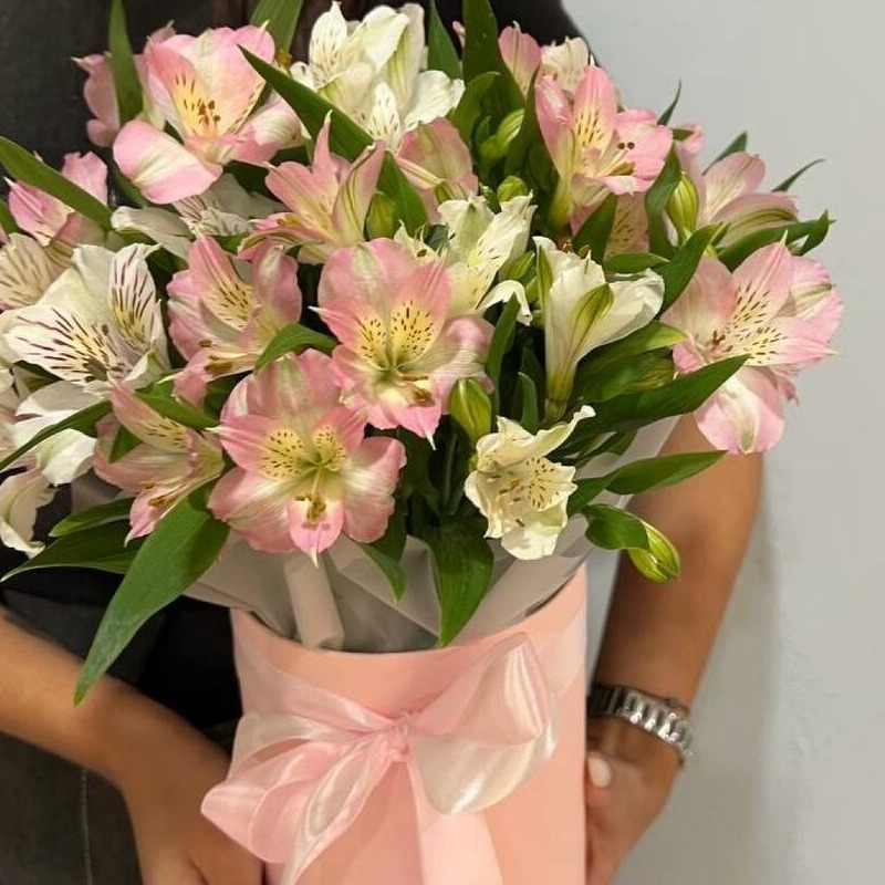 Шляпная коробка с цветами «Сказочная коробка альстромерий»