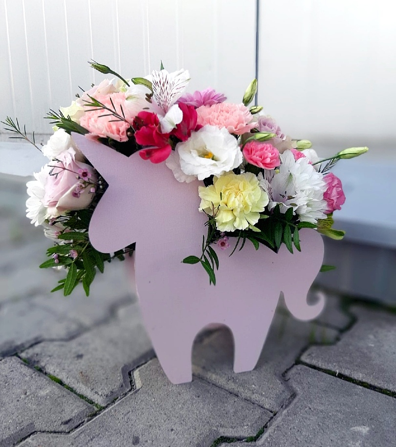 Очень красивая композиция в кашпо Единорог, которая долго будет радовать свою получательницу.