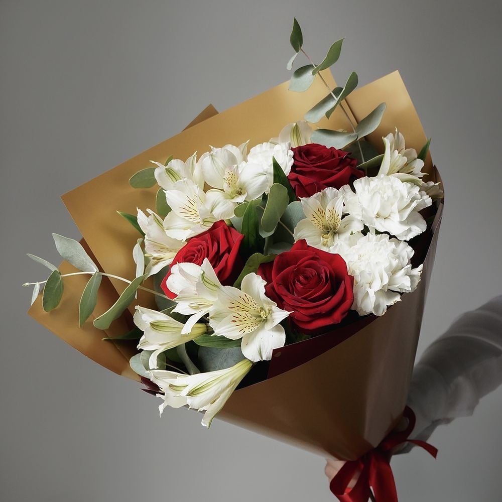 Букет из роз, гвоздик и альстромерий «Скучаю» - это изысканный и стильный подарок, который подойдет для любого повода. Букет состоит из 17 различных цветов: розы, гвоздики и альстромерии. Это сочетание цветов создает неповторимую композицию, которая будет радовать получателя своей красотой и разнообразием оттенков. Букет из роз, гвоздик и альстромерий «Скучаю» - это не просто подарок, это выражение ваших чувств и эмоций.