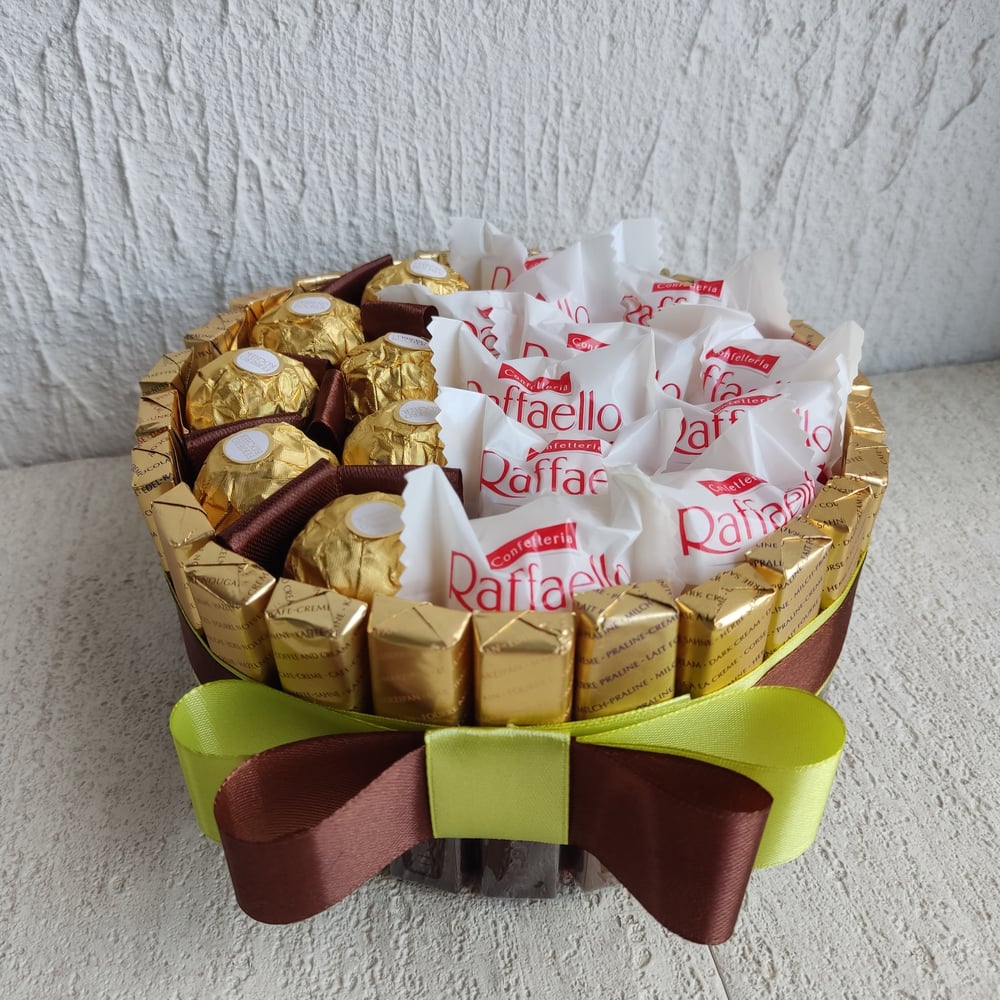 Сладкая композиция из шоколадных конфет Мерси, Ферреро Роше и Рафаэлло