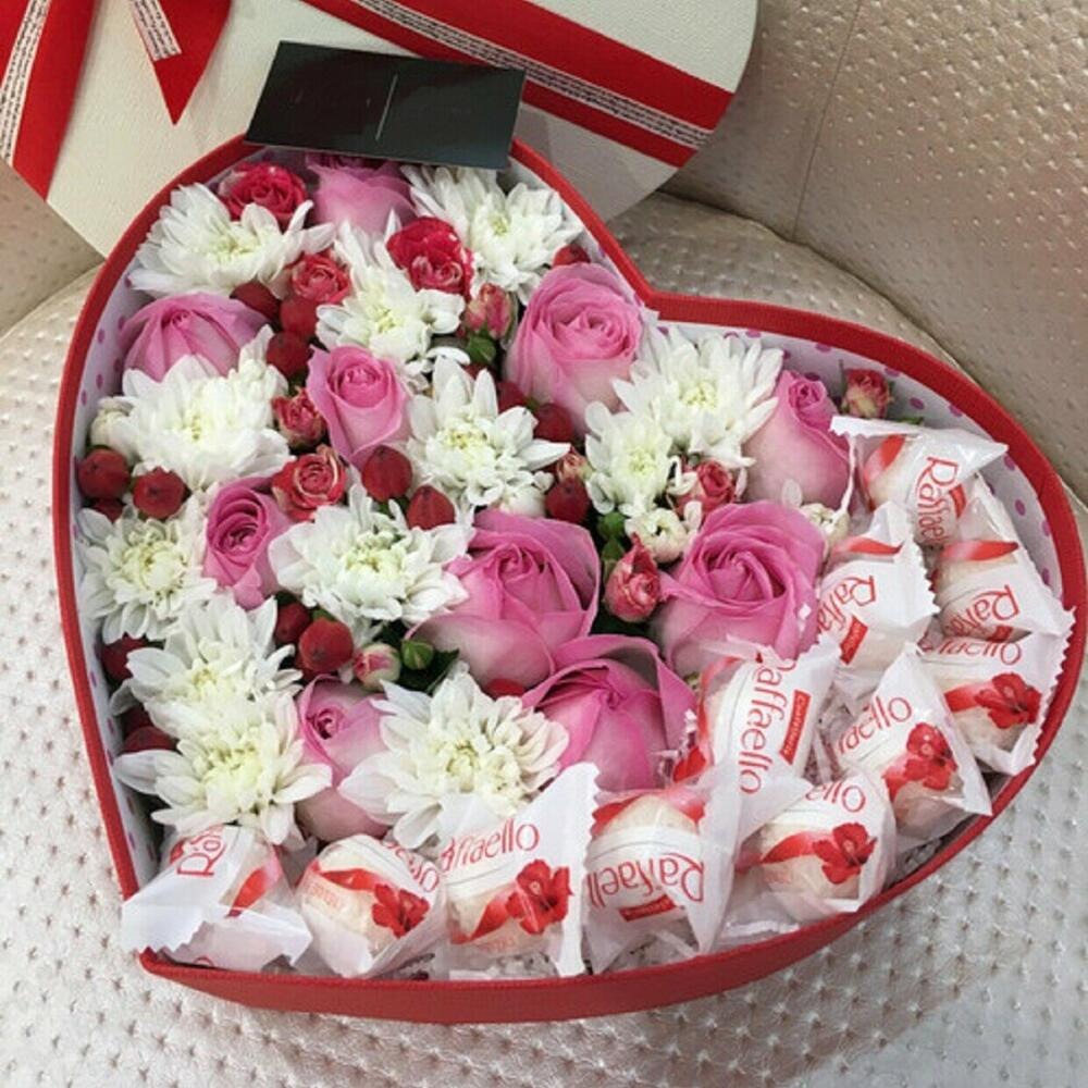 Сладкие кокосовые конфетки и ароматная нежная композиция из цветов, к которым хочется прикоснуться, не оставит никого равнодушным. Эмоции в Вашем букете доставит наш пунктуальный и вежливый курьер.