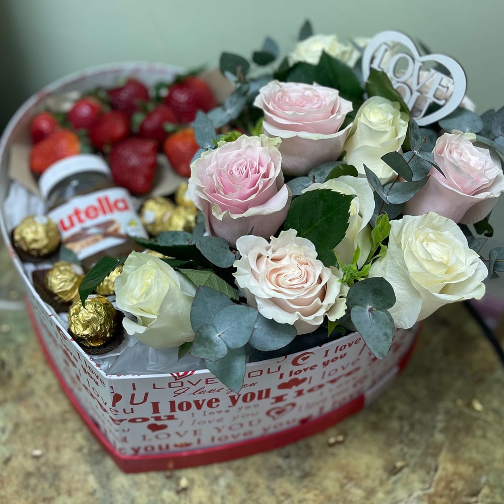 Подарочный набор «Цветочно-ягодная композиция «Сладкий полдень»» из роз