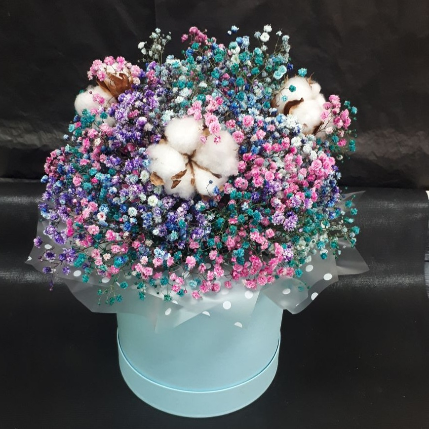 Шляпная коробка с цветами «Сладкий сон» из гипсофил
