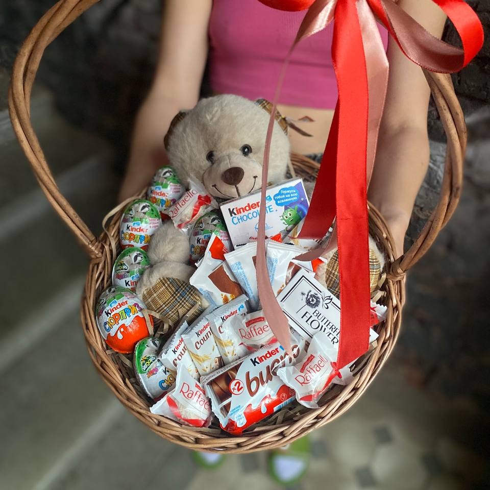 Корзина с мягкой игрушкой и сладостями