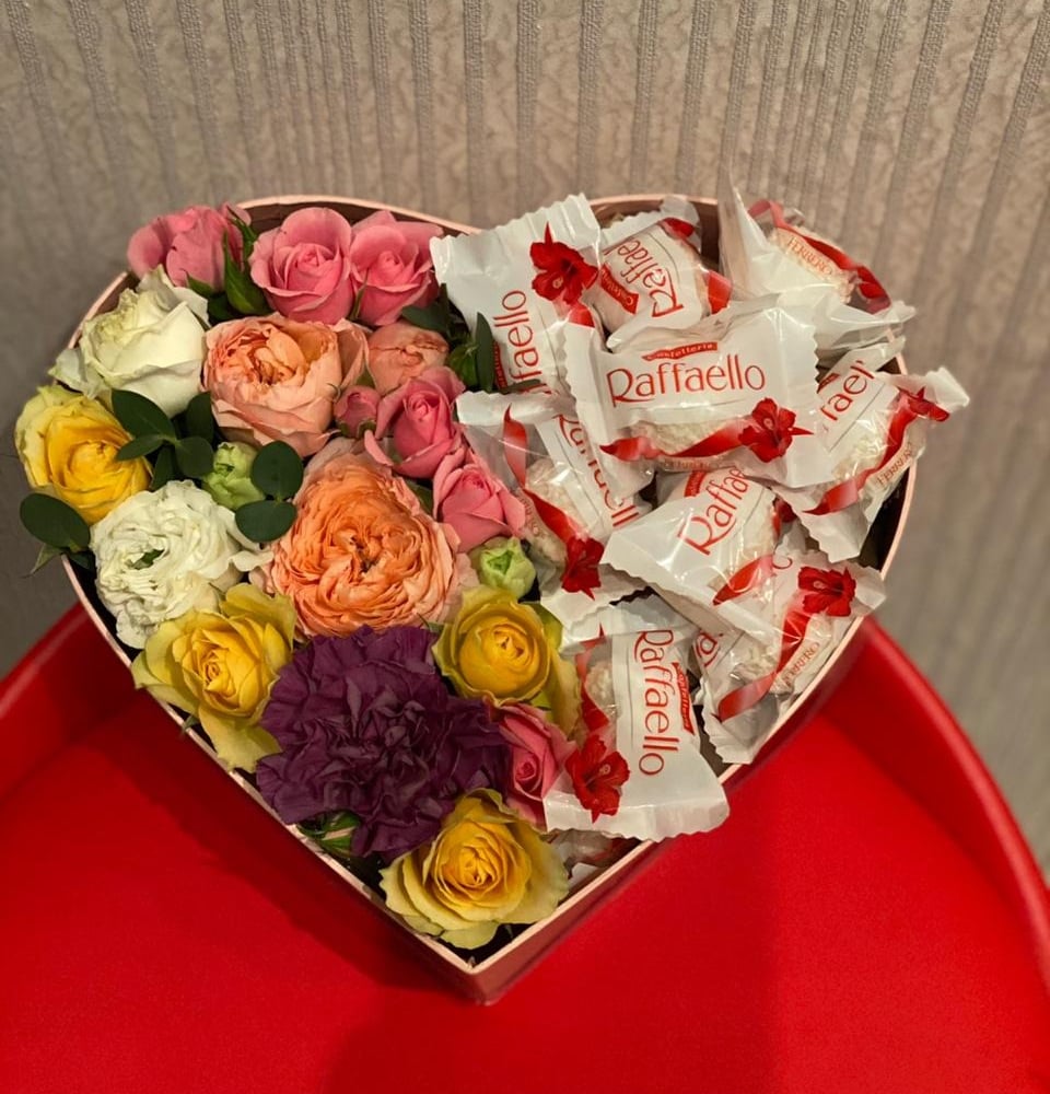 Подарочный набор «Сладкое сердце среднее» из роз и гвоздик