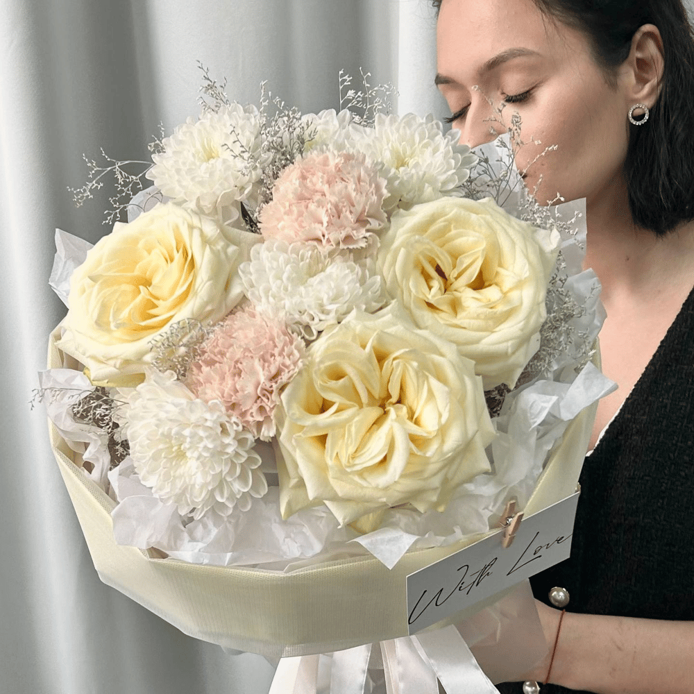 Сливочный букет с ароматными розами