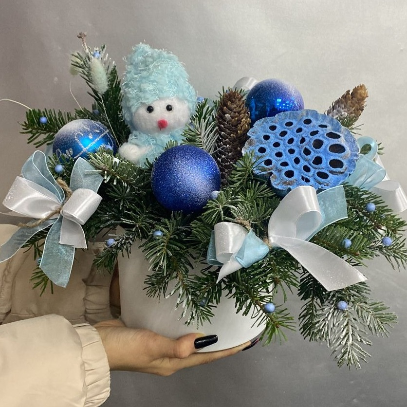 Композиция из нобилиса со снеговиком отличный подарок на новый год. Композиция в синих оттенках- цвете наступающего года