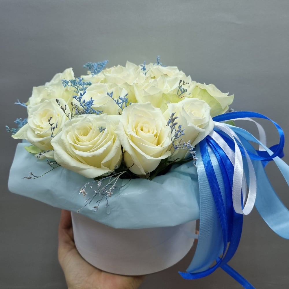 Шляпная коробка с цветами «Снежные розы»
