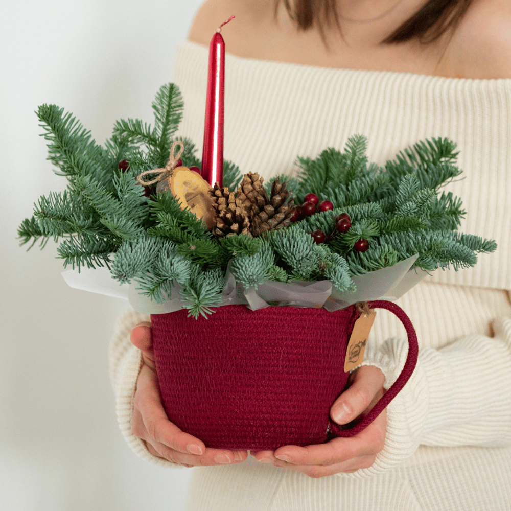 Нобилис с украшениями и свечой в чашке из шнура ручной работы