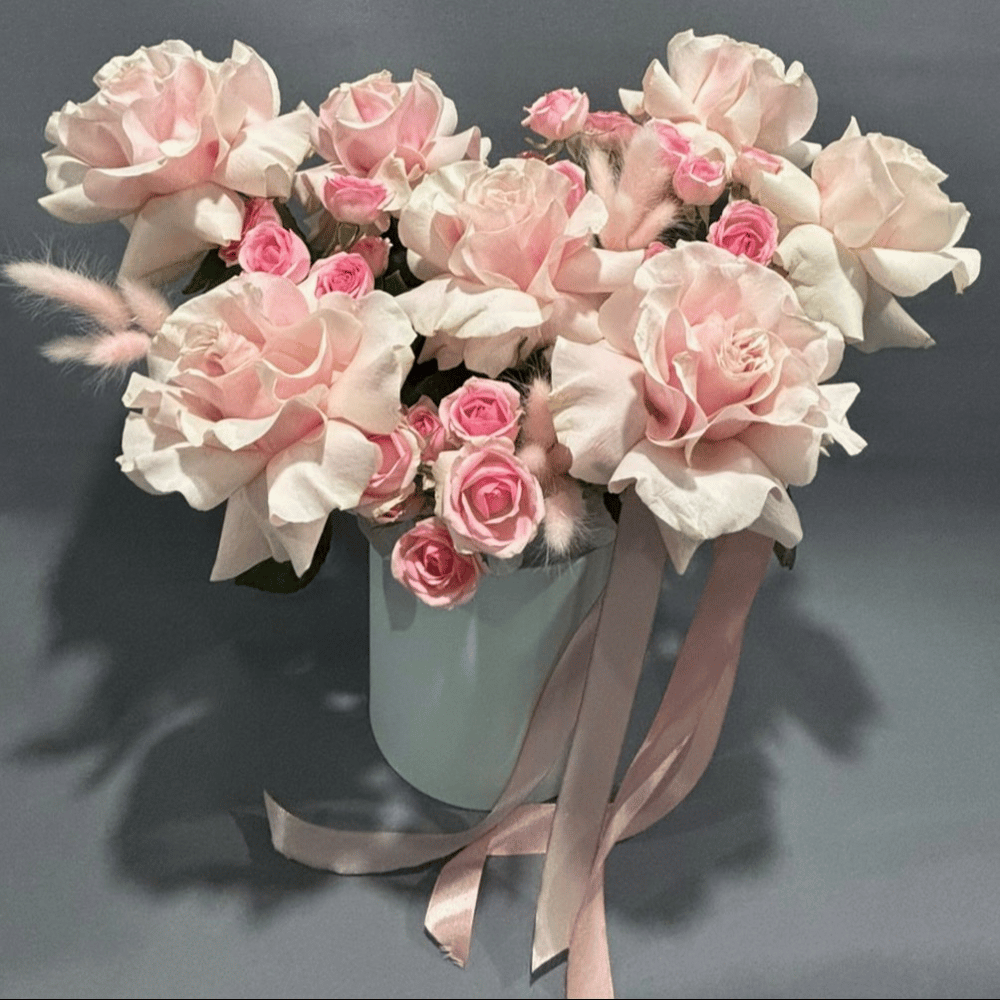 Шляпная коробка с цветами «Soft» из роз