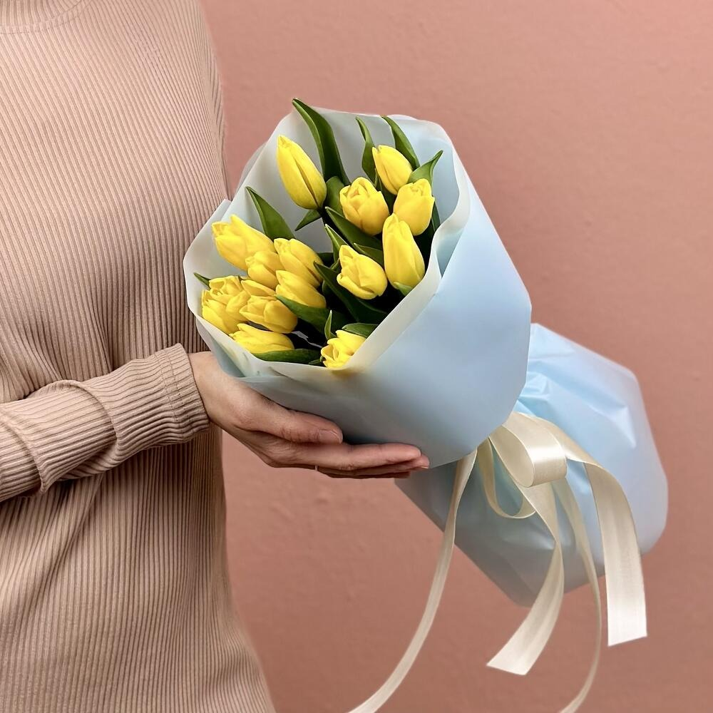 Букет «Солнечное настроение» от Mr. Пион 15 ярких жёлтых тюльпанов — это концентрат радости и тепла в одной композиции. Сочные бутоны словно излучают солнечный свет, даря улыбку и хорошее настроение. Почему стоит выбрать: Символика: жёлтый цвет олицетворяет оптимизм, счастье и новые начинания. Эффектный вид: насыщенный оттенок и стройные стебли создают выразительный, запоминающийся образ. Универсальность: подойдёт для дня рождения, поздравления с успехом или как знак внимания без повода. Долговечность: тюльпаны сохраняют свежесть 5–7 дней при правильном уходе. Детали: стильная лаконичная упаковка, подчёркивающая яркость цветов; аккуратная сборка и надёжная фиксация стеблей; удобная форма для транспортировки и размещения. Подарите «Солнечное настроение» — букет, который согреет сердце и подарит позитив!