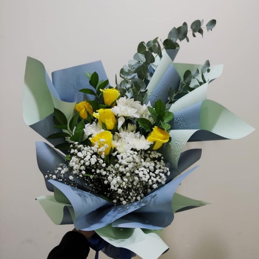 Гипсофила - 2 шт роза - 5 шт зеленый фильтр - 3 шт хризантема - 3 шт