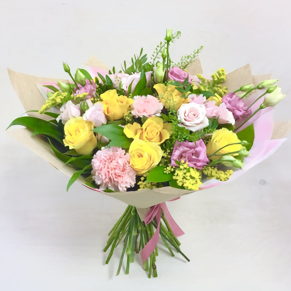 Букет «Солнечный» из роз и эустом