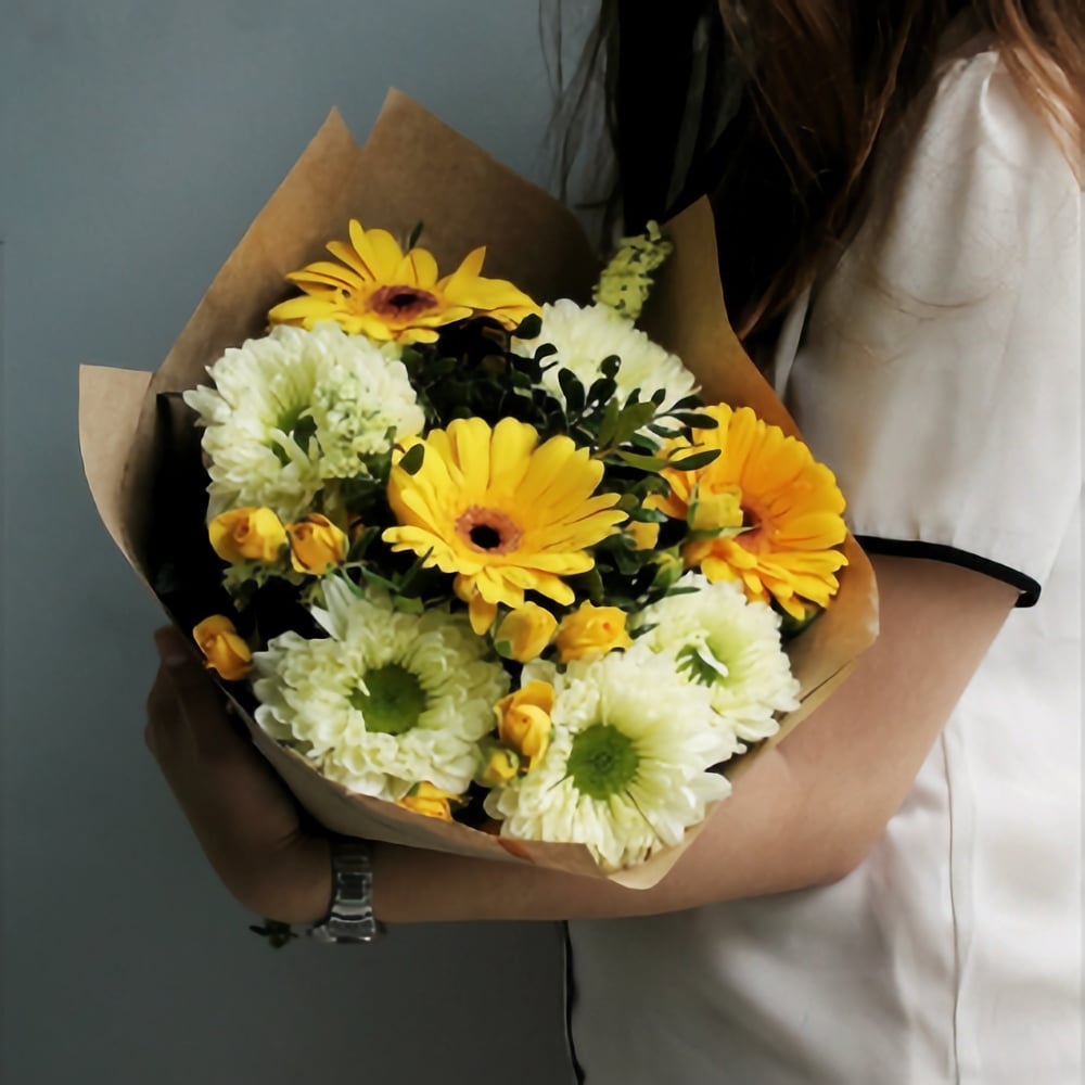 Яркий и солнечный букет, как солнечный зайчик который бежит по кровати в поисках её улыбки)