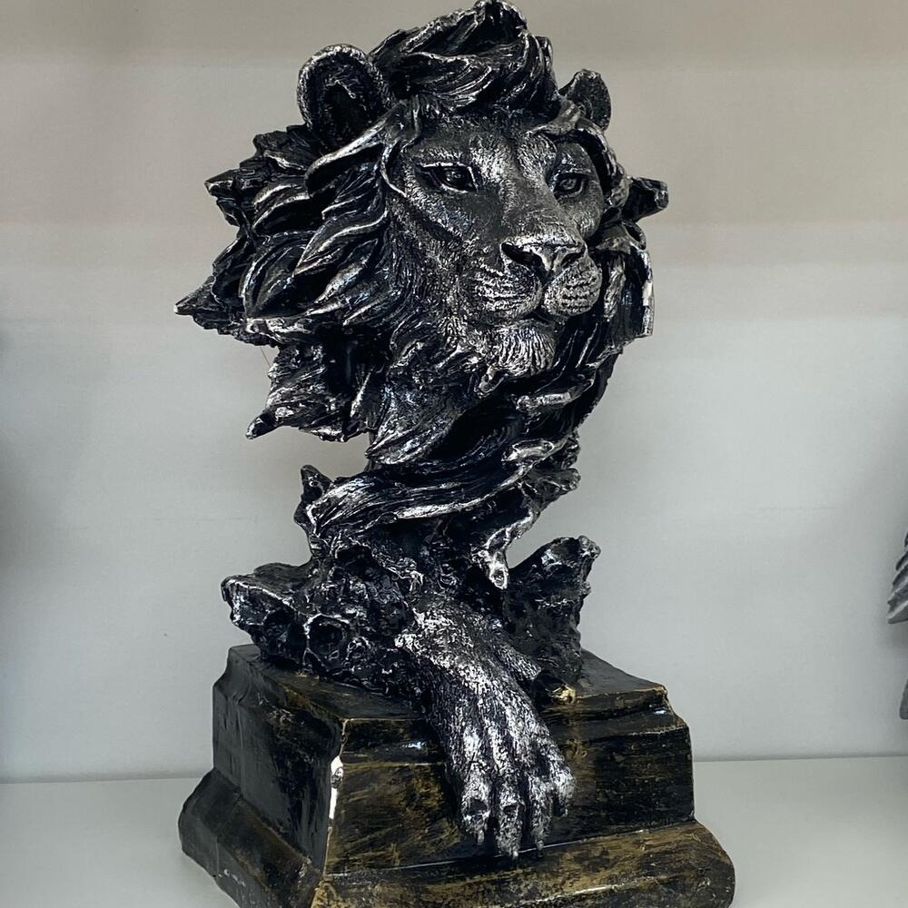 Статуэтка "Лев" серебро из гипса. Размер Ширина - 13 см Высота - 20 см
