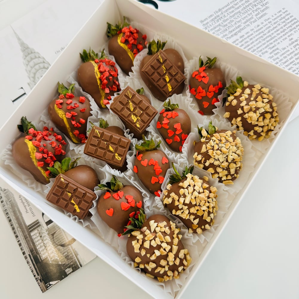 Свежая клубника в бельгийском шоколаде с кондитерскими посыпками ( сердечки, арахис и сублимированная клубника)