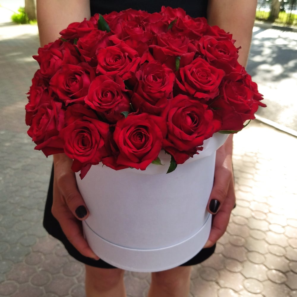 Шляпная коробка с цветами «Стрелы Амура» из роз