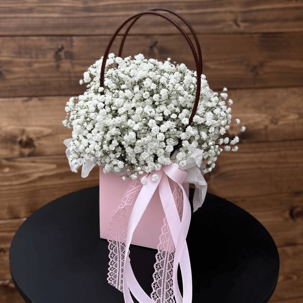Коробка с цветами «Сумочка из гипсофилы»