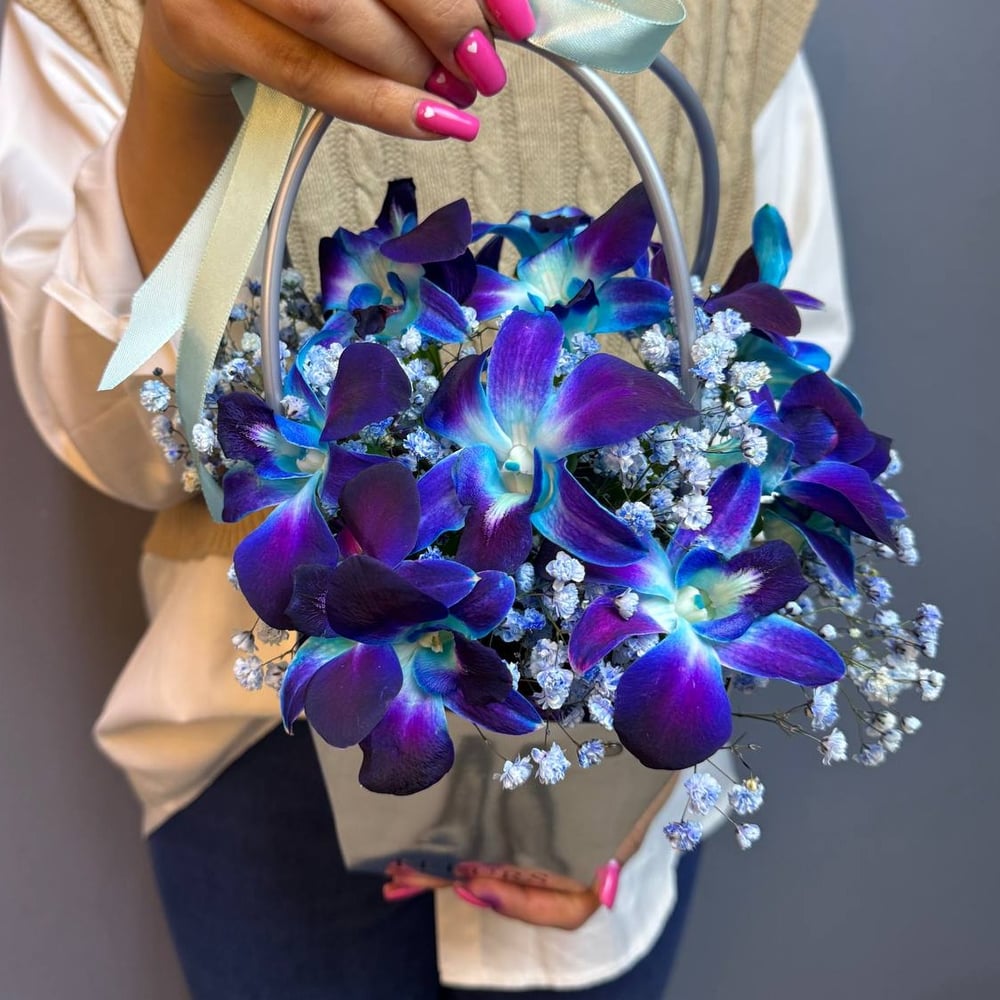 Коробка с цветами «Сумочка из Орхидей» из гипсофил
