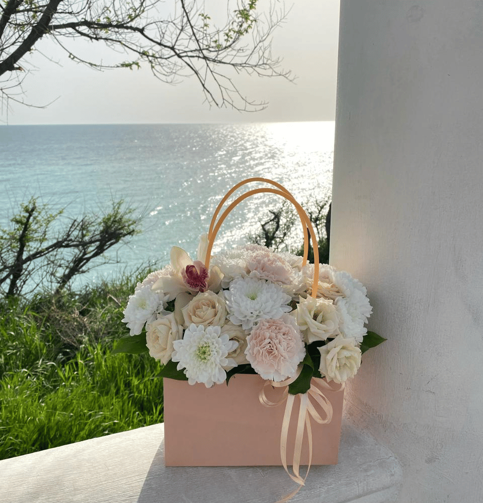 Композиция «Сумочка " Нежность"» из роз и гвоздик