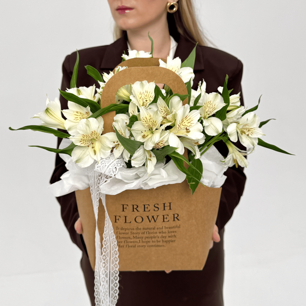 Элегантная композиция в виде стильной сумочки, украшенной яркими и эффектными альстромериями. Визуально изящная и современная, эта флористическая форма подчеркнет ваш оригинальный вкус и станет оригинальным подарком или украшением интерьера. Свежие, насыщенные цветы создают атмосферу праздничности и очарования, вызывая улыбку и восхищение. Закажите сейчас и подчеркните свою индивидуальность!