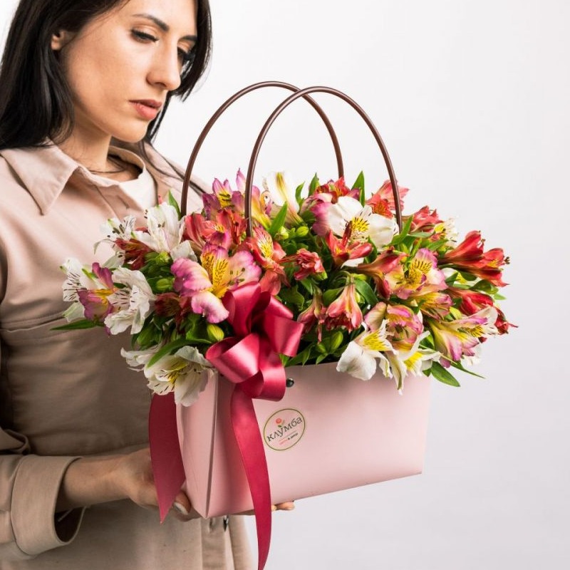 Композиция «Сумочка с альстромерией "Нежный витраж"»