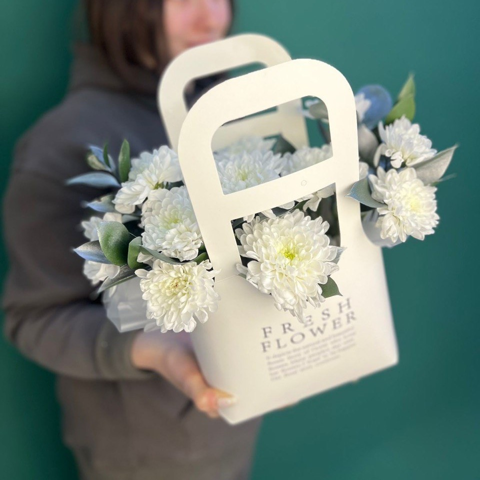 Коробка с цветами «Сумочка с хризантемой»