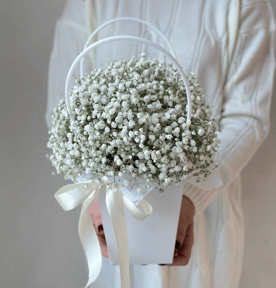 Коробка с цветами «Сумочка стойкой гипсофилы»