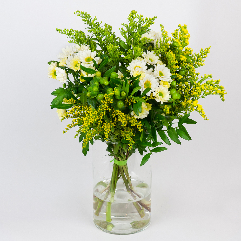 Nice and sunny arrangement in European style will give your recipient summer mood and bright up their day just like a ray of sunshine.