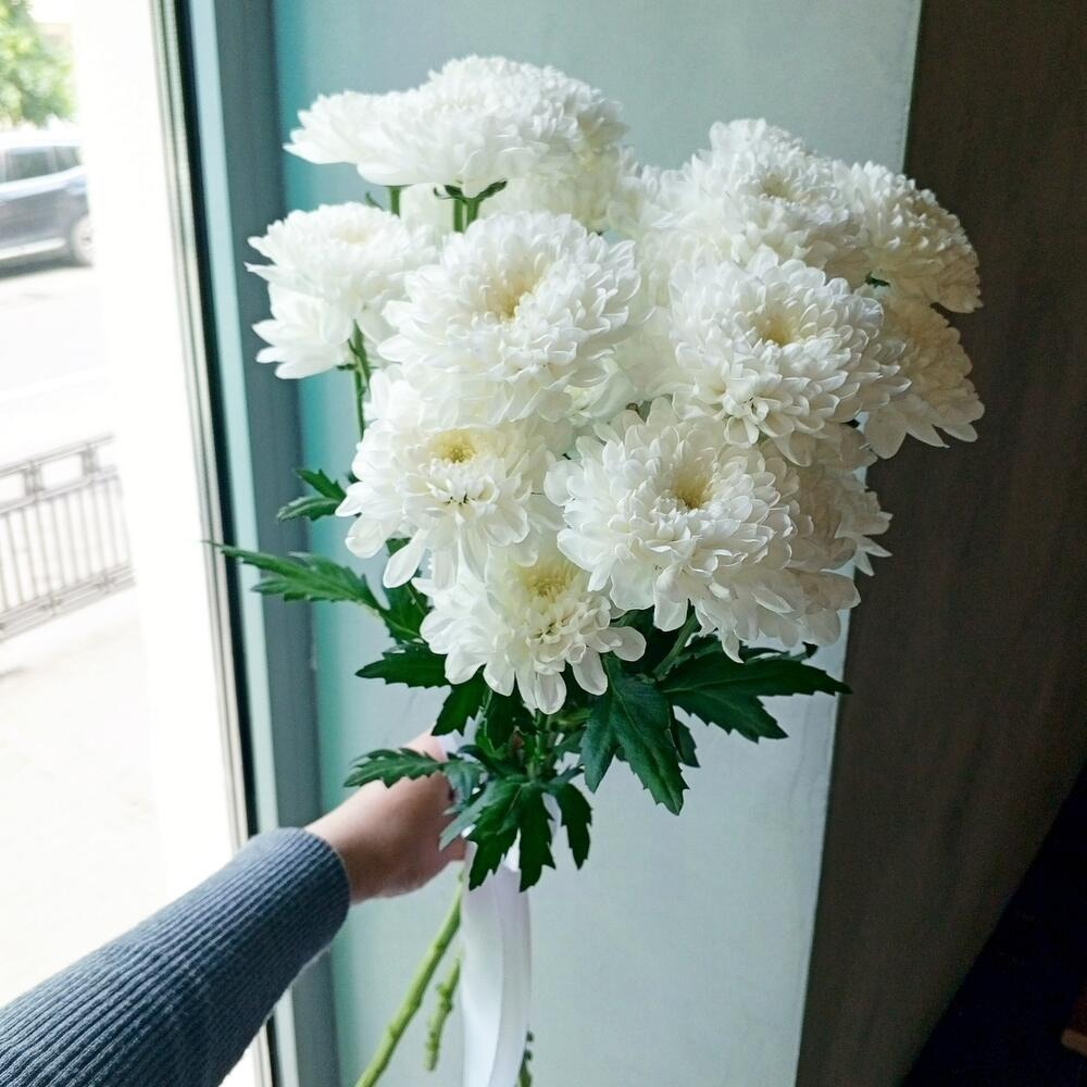 "Светлые чувства" букет белых кустовых хризантем. В дополнении к нашим букетам идет Сладкий подарок от магазина