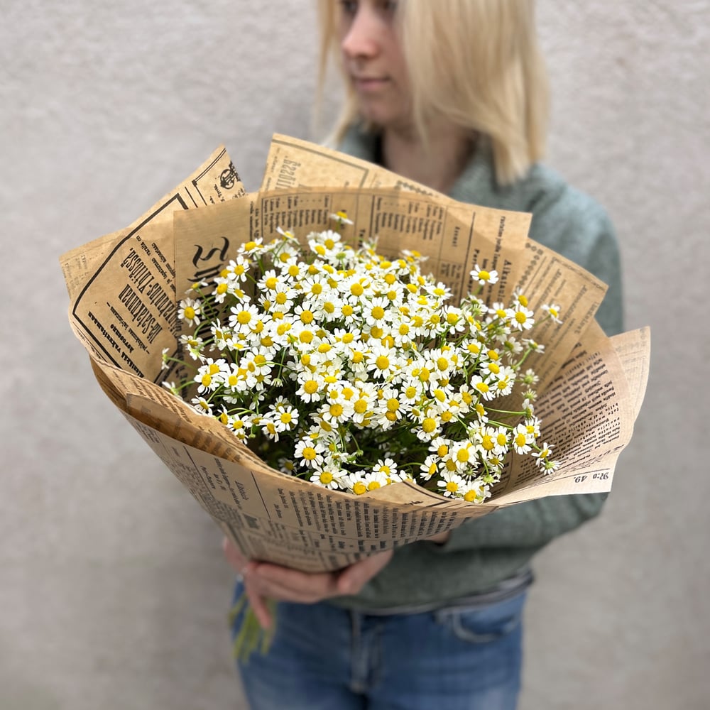 Букет свежих кустовых ромашек - это настоящее украшение любого интерьера! Его нежные лепестки, словно маленькие солнышки, наполняют комнату своим теплым светом и создают атмосферу уюта и комфорта. ...