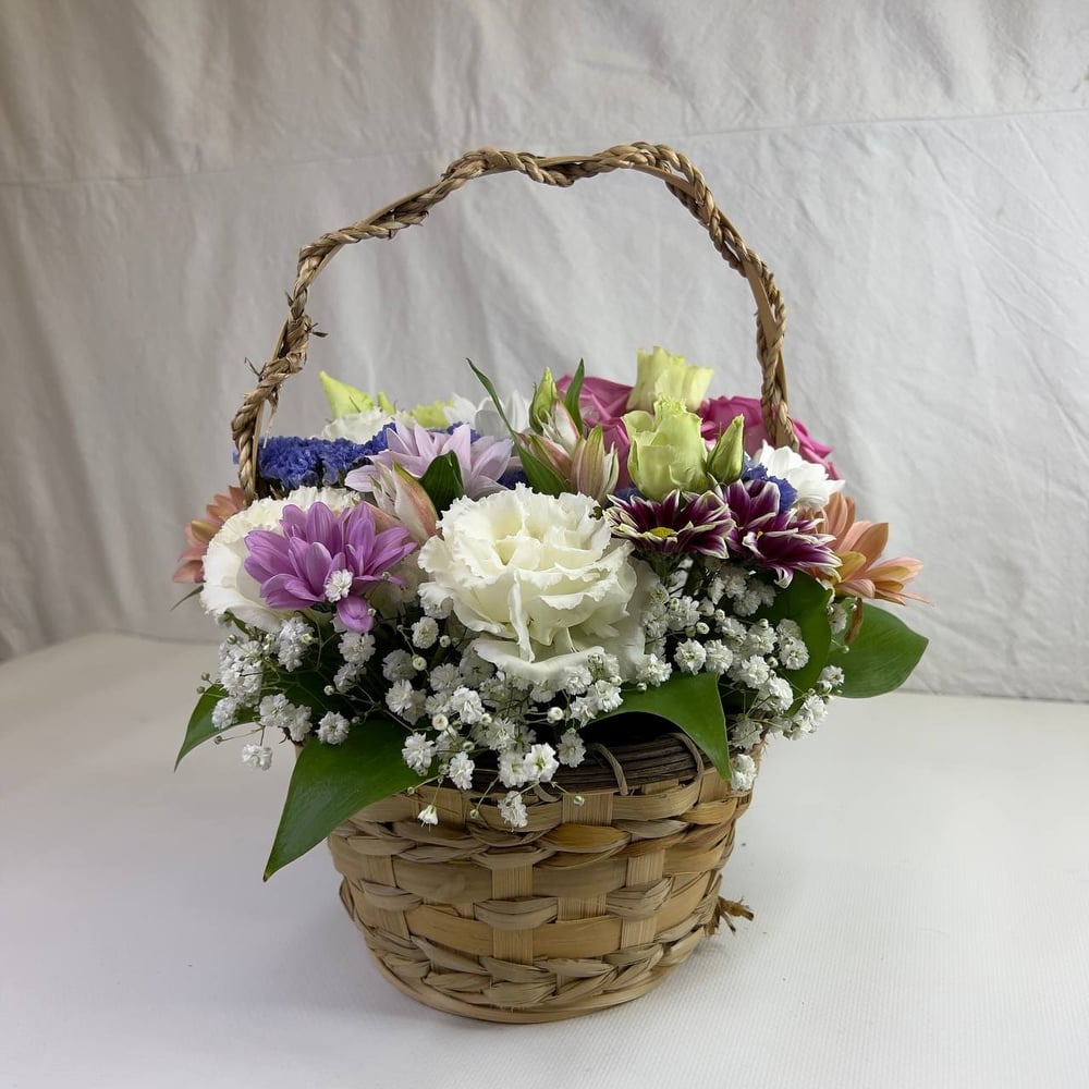 Нежная композиция в корзинке из свежих цветов послужит отличным дополнением к Вашему поздравлению по любому поводу. Открыточка с Вашим текстом бонусом.