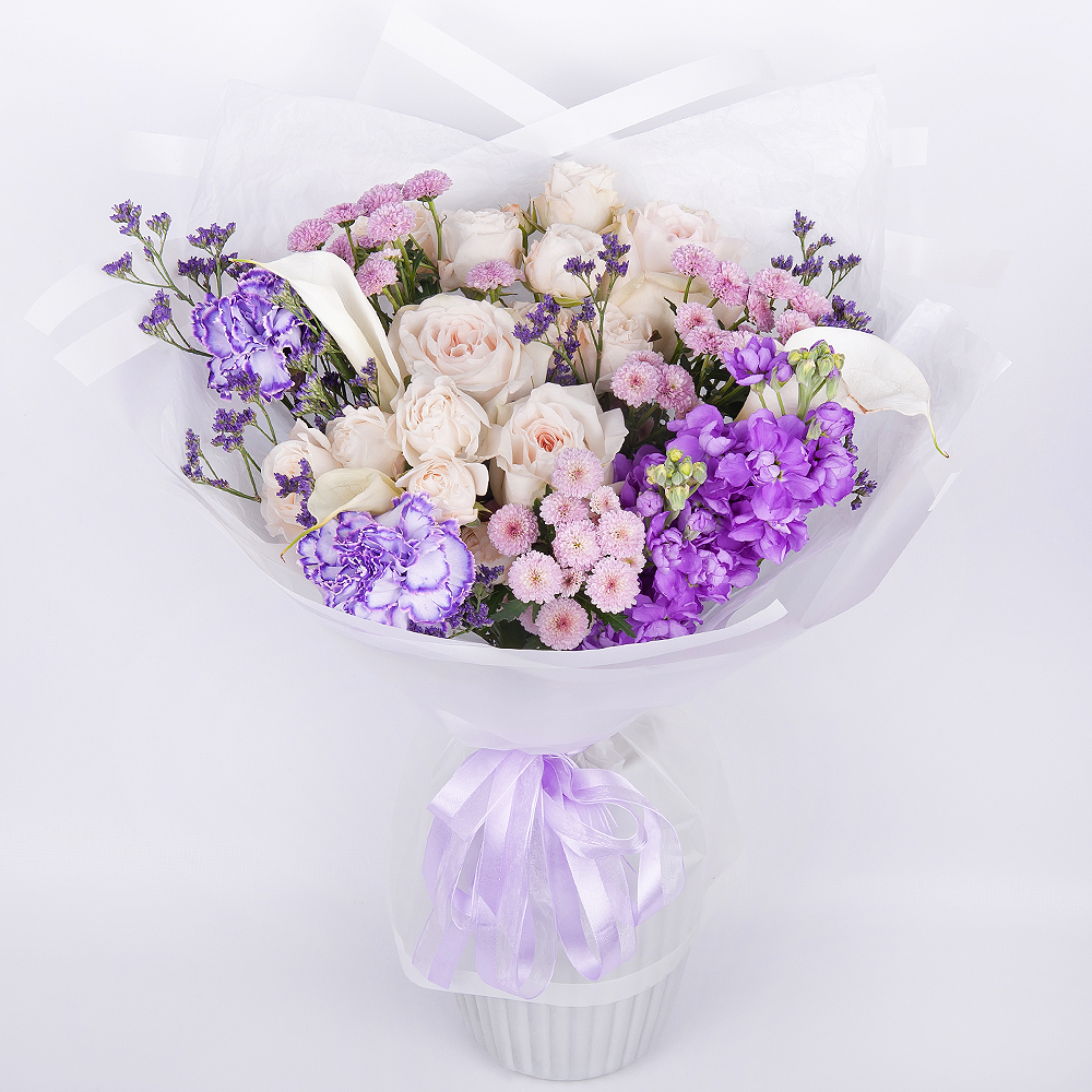 Букет «Таинственный сад» — это удивительное сочетание пионовидных роз, калл, гвоздик, маттиол, кустовых хризантем и лимониума, которое создаёт атмосферу загадочности и роскоши. Букет «Таинственный...