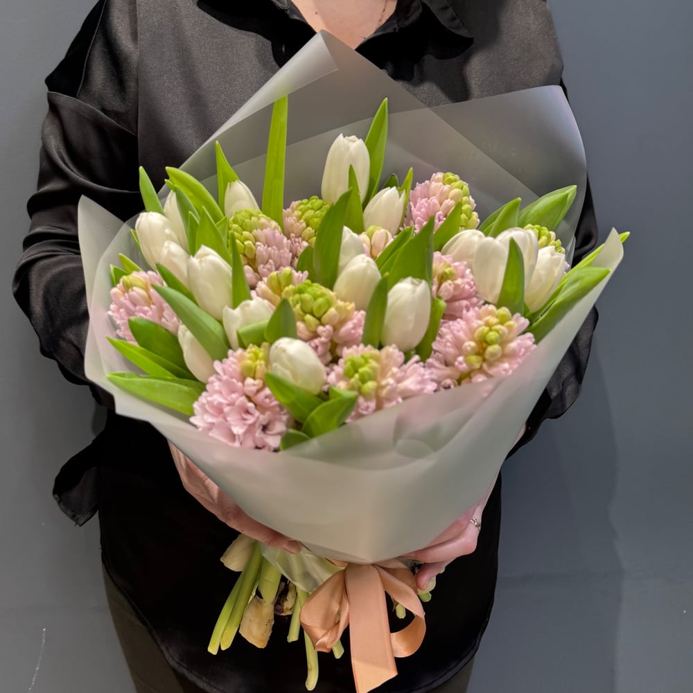 Букет «Талая вода» из тюльпанов и экзотических цветов