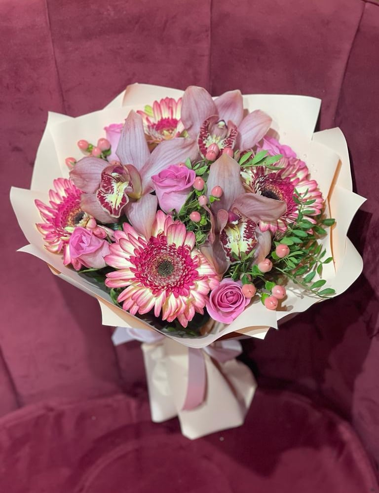 Букет и гербер и орхидей