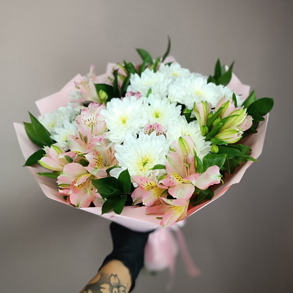 Букет «Теплый ветер» из альстромерий и хризантем