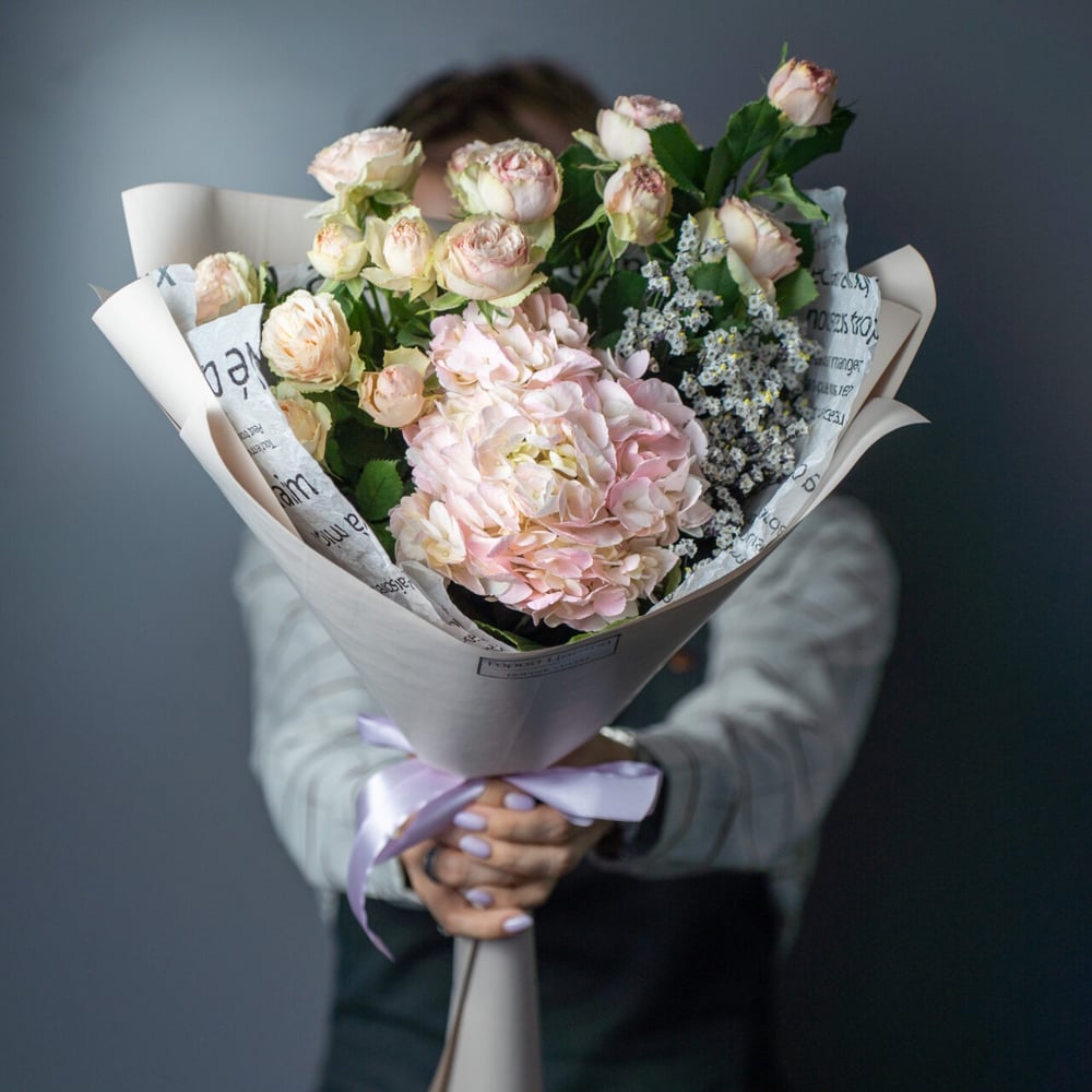Гортензия – 1 шт Роза кустовая – 2 шт Лимониум – 1 шт