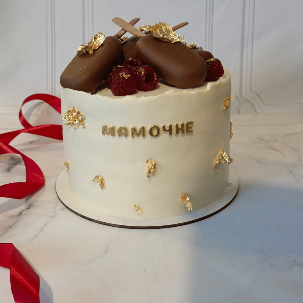 Торт для мамы , также можно поменять буквы к примеру для любимой, и тд Начинка на выбор сникерс, шоколадный с прослойкой вишня, морковный, красный бархат с клубникой, медовик на основе Грузинского мёда Вес торта 2кг Диаметр 18 см Торт украшен мармеладной малиной из пюре малины и пирожными эскимо