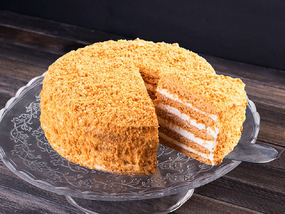 Песочно-медовые коржи, пропитанные кремом из сливок