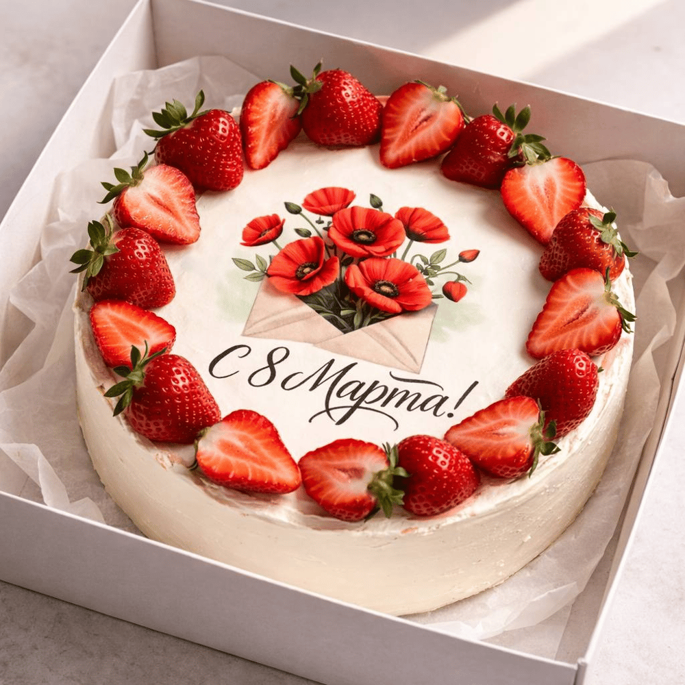 Торт с 8 марта с клубникой 1.2 кг