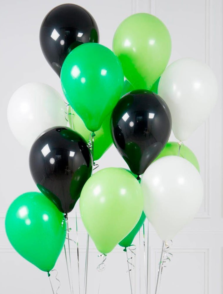 14 латексных шаров: 3 белых, 8 зеленых и 3 черных. Оттенок цвета может отличаться от представленного на фотографии.