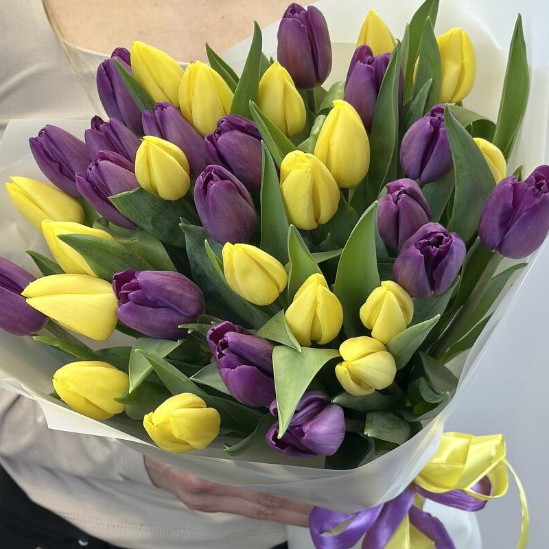 Трендовый букет из 35 тюльпанов