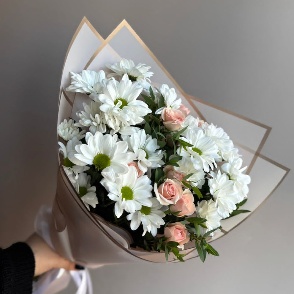Букет из хризантемы и кустовой розы