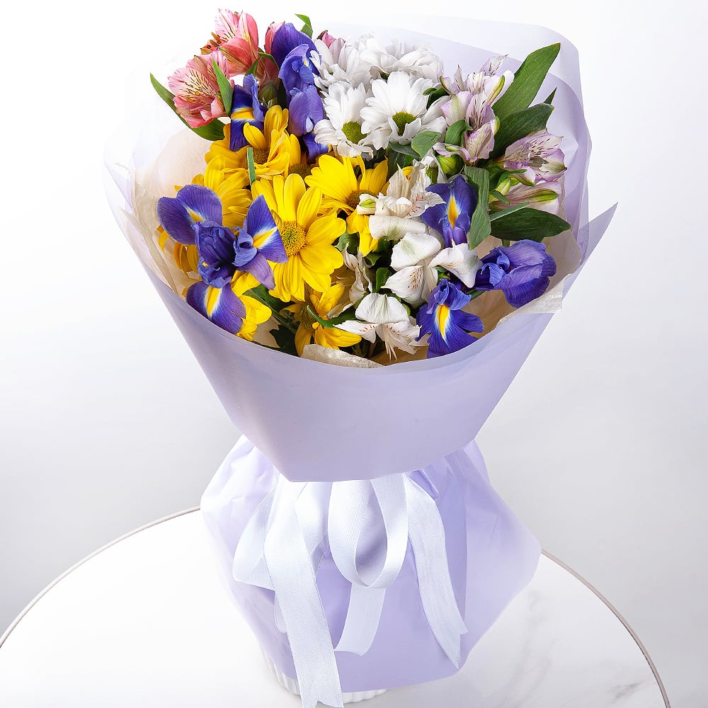 Букет «Цвета счастья» из ирисов и альстромерий