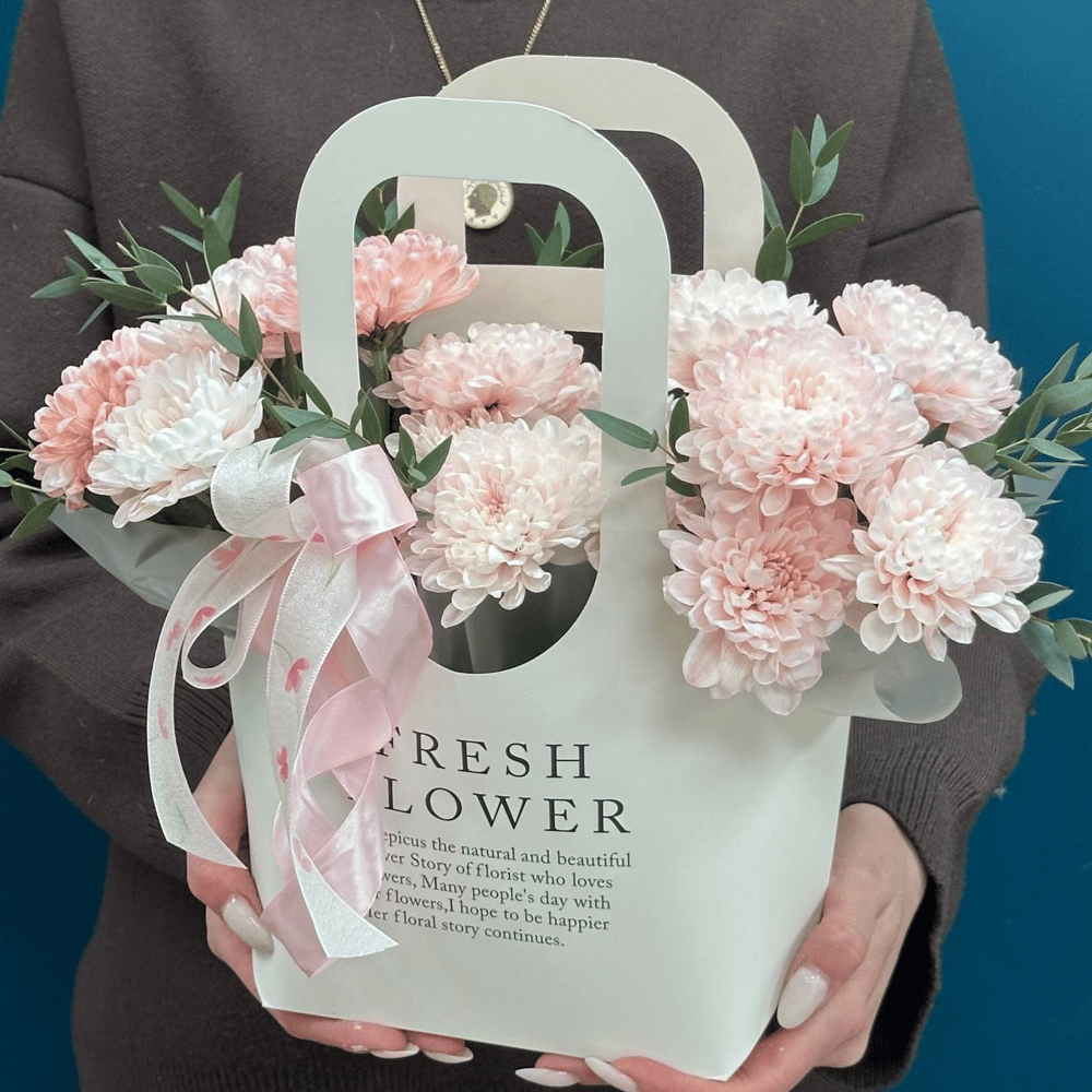Композиция из нежных розовых хризантем станет прекрасным выбором для любого случая. Эти цветы символизируют элегантность, красоту и искреннюю привязанность. Букет идеально подойдет как для романтич...
