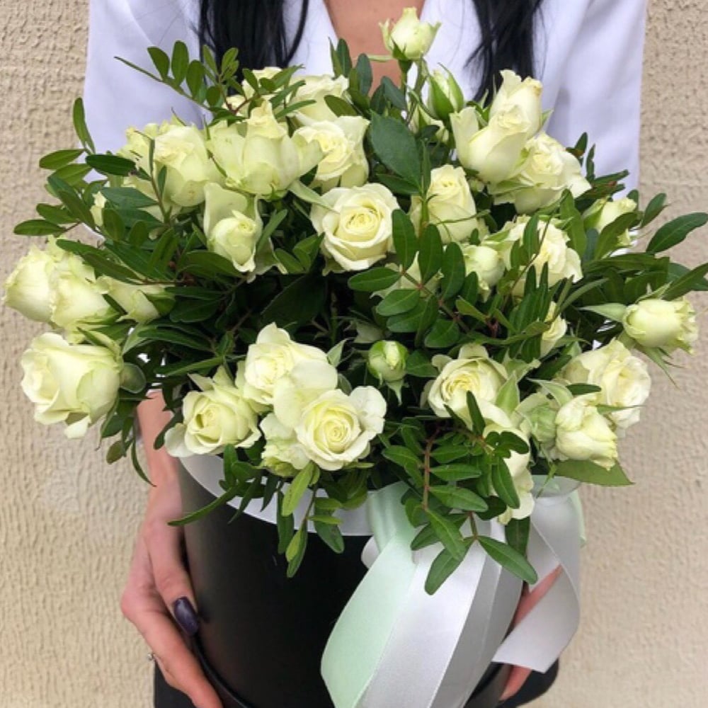 Шляпная коробка с цветами «Цветочная композиция "Воспоминания"» из роз