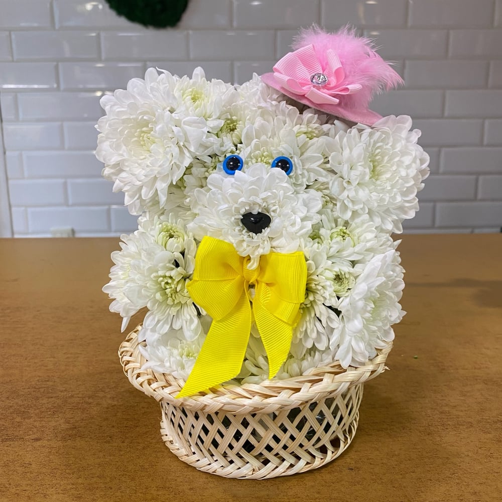 Композиция «Цветочная собачка» из хризантем
