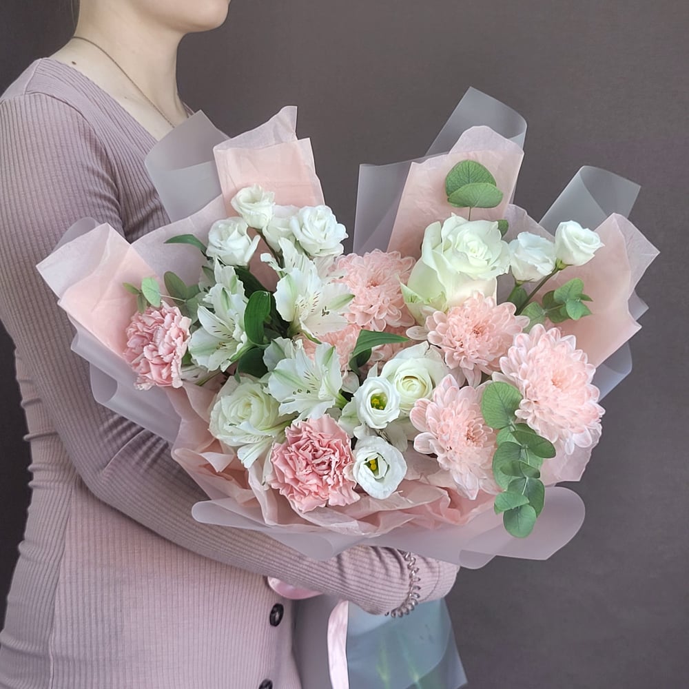 Букет «Цветочное облако» из роз и эустом
