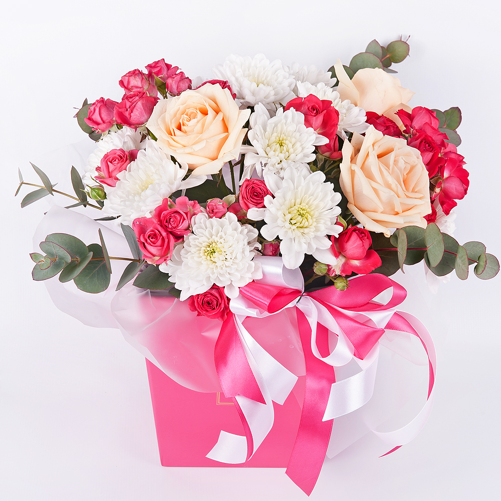 Композиция «Цветочный штрих» из роз и хризантем