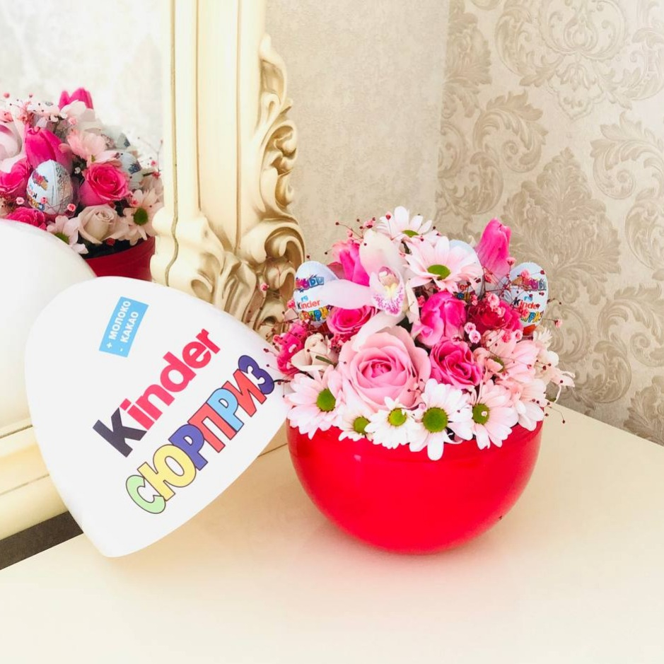 Подарочный набор «Цветы в киндере» из тюльпанов и гипсофил